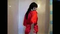 The brunette in a red bathrobe stands before her fulllength mirror, feeling the heat radiating from within her chest as her desperate need for release grows stronger by the second.Her longing gaze focuses on the glistening water droplets trickling down the showerhead, beckoning to her.As she slips off the robe and steps into the warm embrace of the hot shower, her nipples harden from the cold air, poking through the fabric of her now seethrough lingerie, yearning for a touch they crave.Her fingers dance with wanton abandon across her tanned and wet skin, tracing a path from the base of her throat down to the junction where her thighs meet the curvature of her hips, leaving no part unnoticed or untouched by her explorative hands.As she reaches down, her horny fingers make their way past the moist folds of her womanhood, searching for that sweet spot she craves so much.The scent of her arousal fills the small bathroom with a heady aroma, as strong and inviting as a wildflower in full bloom.The room hums with an air of desire and anticipation, only further fueling her passion.The water droplets form patterns on the tile floor, resembling the rippling effect of an orgasm.Her deep breaths are accompanied by soft moans that echo off the porcelain surfaces around her, her nails dig into the supple skin of her breasts and down to her tits as her hands work their magic on herself, her fingers expertly pleasing her as she rubs her clit and teases the sensitive nub.Her thighs part, allowing the water to wash over the swollen lips of her pussy, lapping at them hungrily.As her pleasure reaches new heights, she imagines the feeling of someone elses hands on her body, the sensation of being filled and claimed by another, as their lips meet her tits, their teeth gently nibbling at her hard nipples while their hands explore every inch of her flesh.Her own touch pales in comparison to the erotic fantasy she envisions.She shudders and lets out an earpiercing cry, her release as explosive and intense as a firecracker in the night.The water turns a myriad of colors from her spent passion, a perfect mirror image of her bodys aftermath.The red bathrobe now forgotten, lying crumpled and sodden on the bathroom floor, she stands beneath the showerhead once more, allowing it to wash away every last drop of her desire as she prepares herself for another desperate need in the near future.