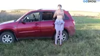 Wild woman uses toy in car for passionate solo play